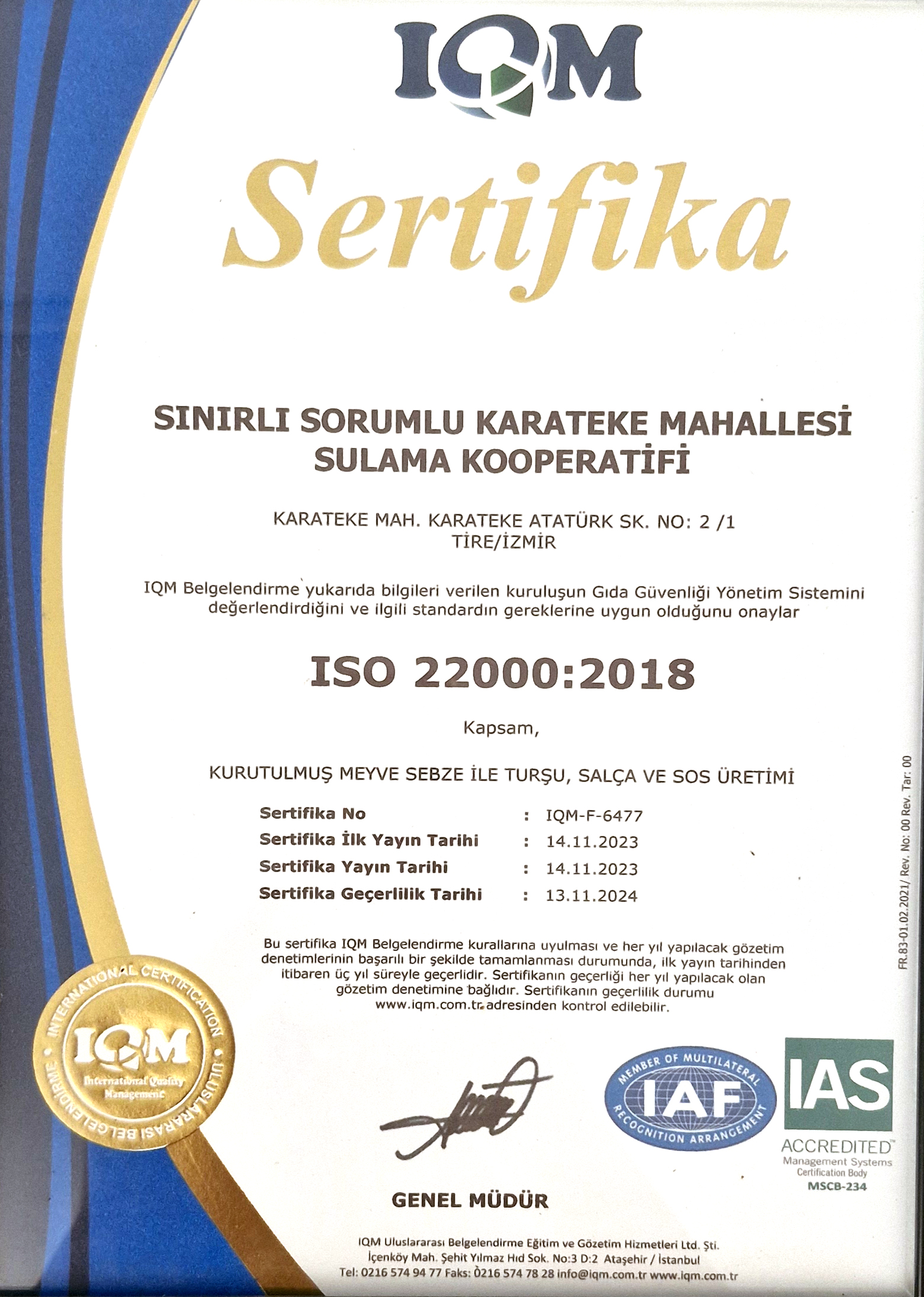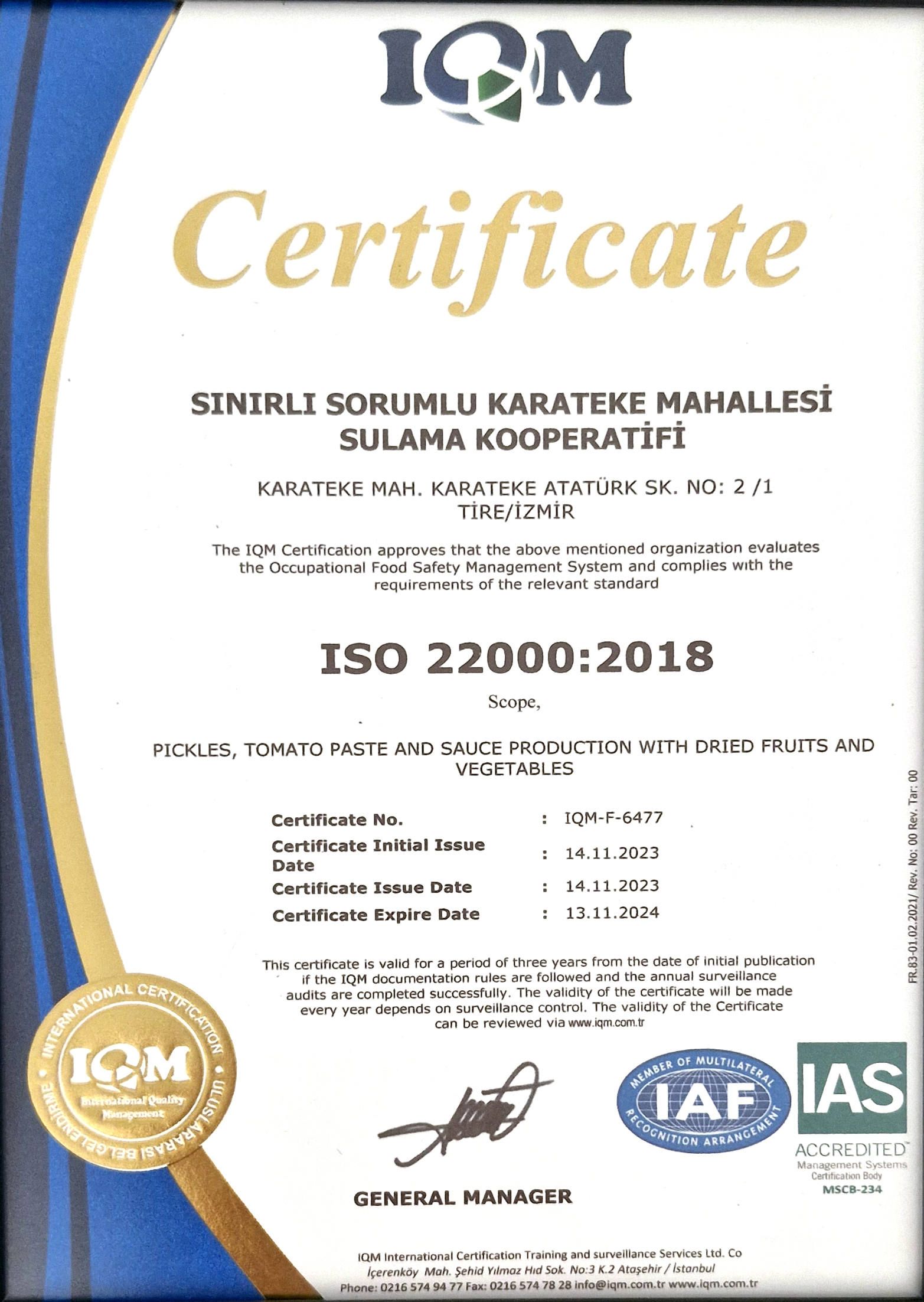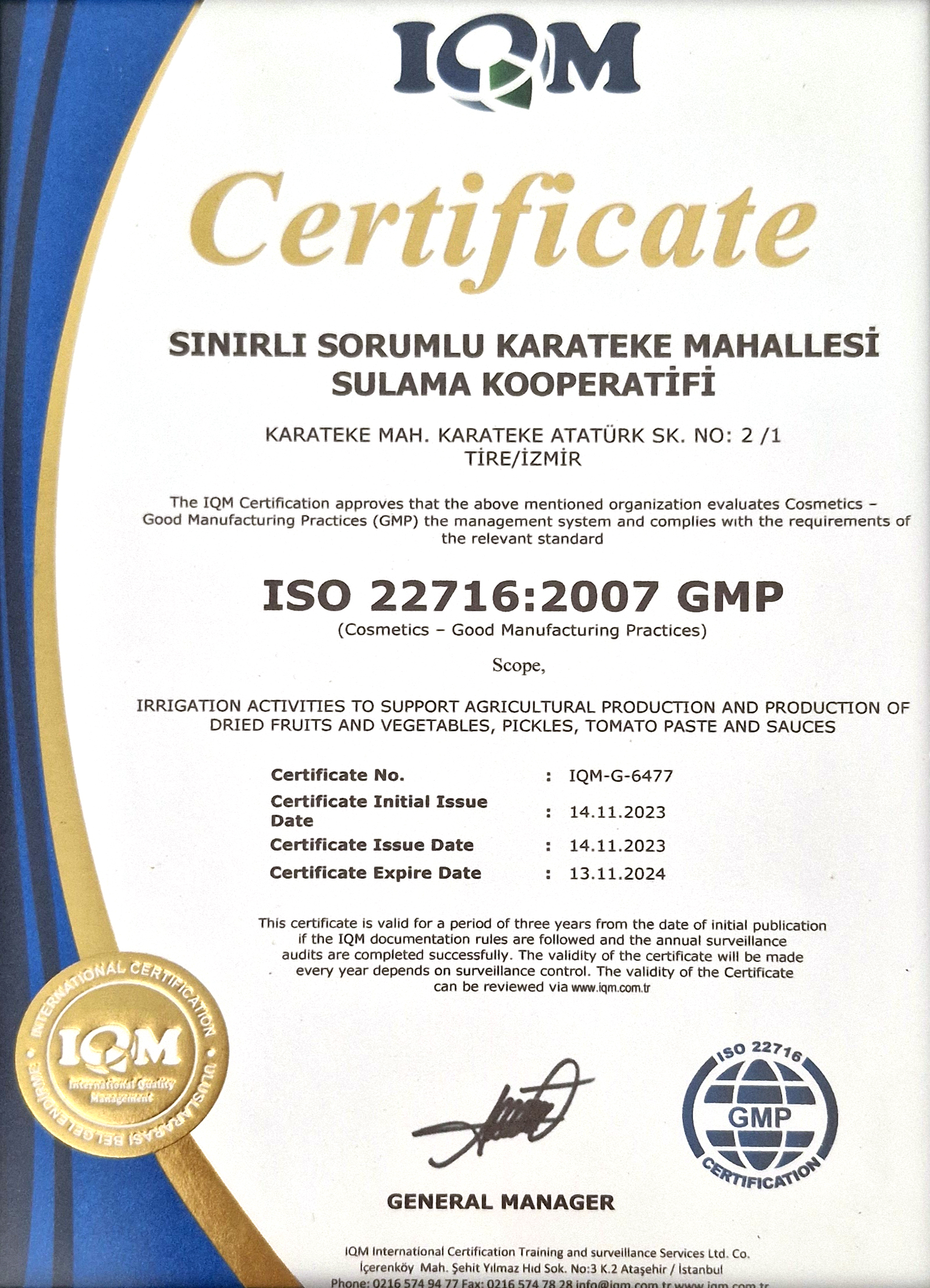 Karateke Mahallesi Sulama Kooperatifi olarak, ortaklarımıza daha kaliteli hizmet sunmayı ve istihdam alanları yaratmayı ilke ediniyoruz. Kısa süre içinde yurt içi pazarın ötesine geçerek Avrupa ülkelerine ürün ihraç etmeye başladık.