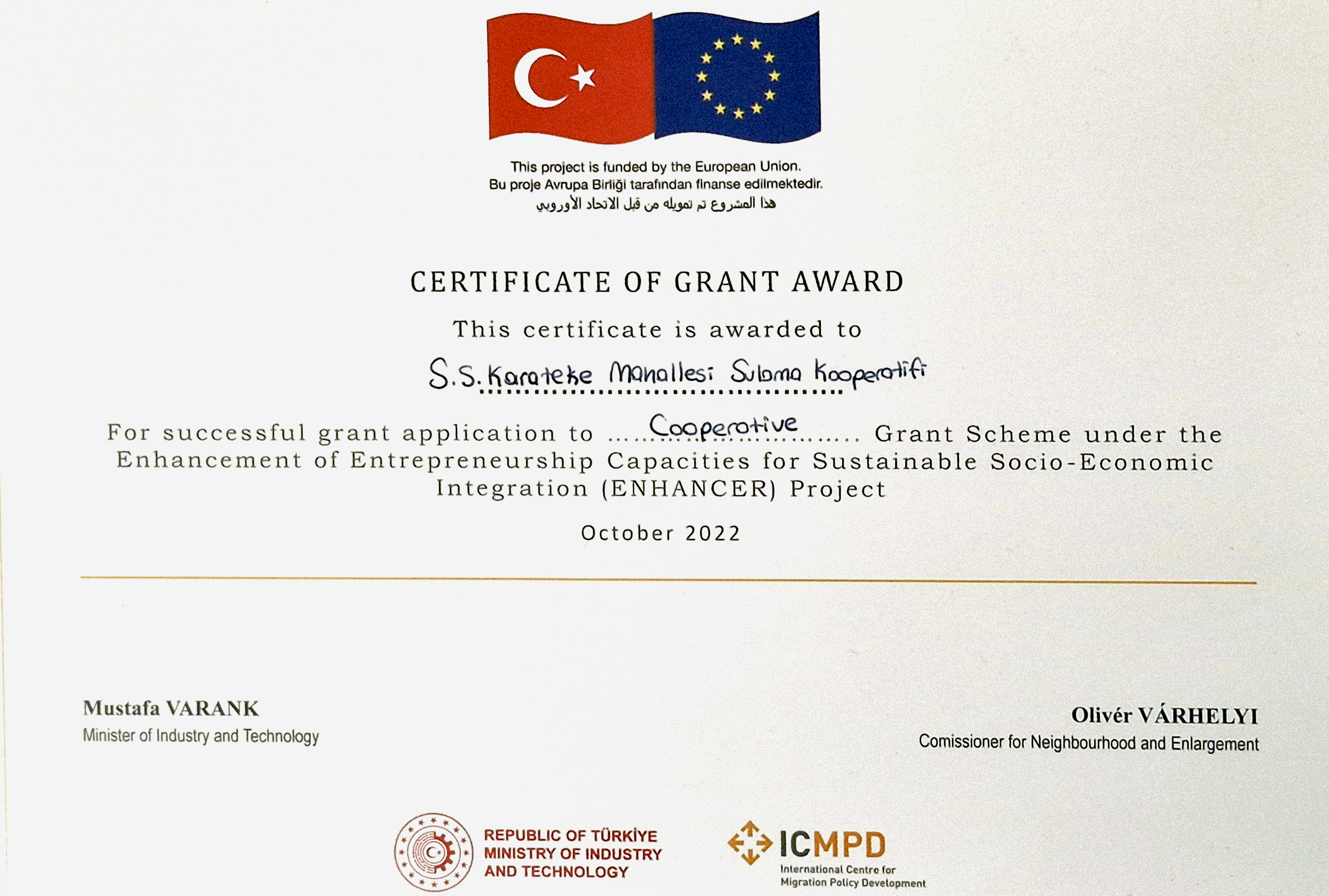 Kooperatif 2022 yılında Avrupa Birliği tarafından fonlanan uluslararası göç politikaları geliştirme merkezi ICMPD ve Sanayi Teknoloji Bakanlığı Kalkınma Ajansları Genel Müdürlüğü koordinasyonuyla yürütülen Enhancer projesi kapsamında %90 hibe destekli 429.000 € hibe almaya hak kazandı.